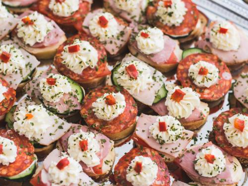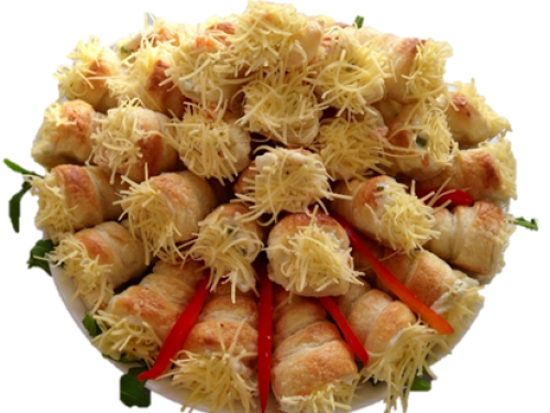 krem sir / dimljeno belo meso / paprikaDostava se vrši u kutijama za koktel pecivo ili servirano na ovalima za jednokratnu upotrebu