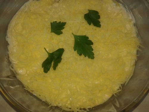 Povrće za rusku salatu, majonez(običan ili posni), krastavci, šunkaMimoza salata1400,00
