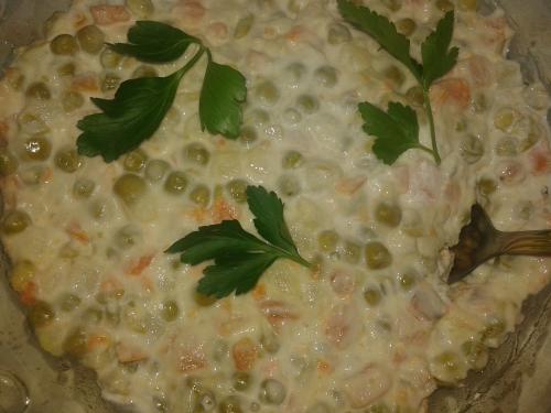 posna ruska salataDostava se vrši u kutijama za koktel pecivo ili servirano na ovalima za jednokratnu upotrebu