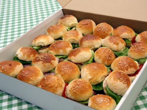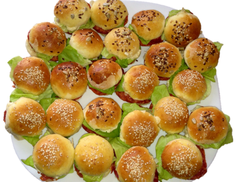 kečap / sir / šunka / slaninicaDostava se vrši u kutijama za koktel pecivo ili servirano na ovalima za jednokratnu upotrebu